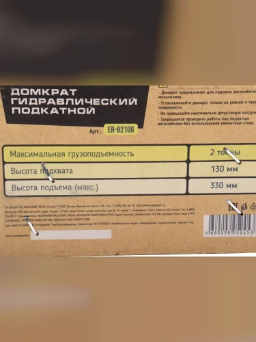 | Наименование | Домкрат подкатной 2т 130-330мм ЭВРИКА ЭВРИКА er-82106 в Ставрополе Ставропольском крае |