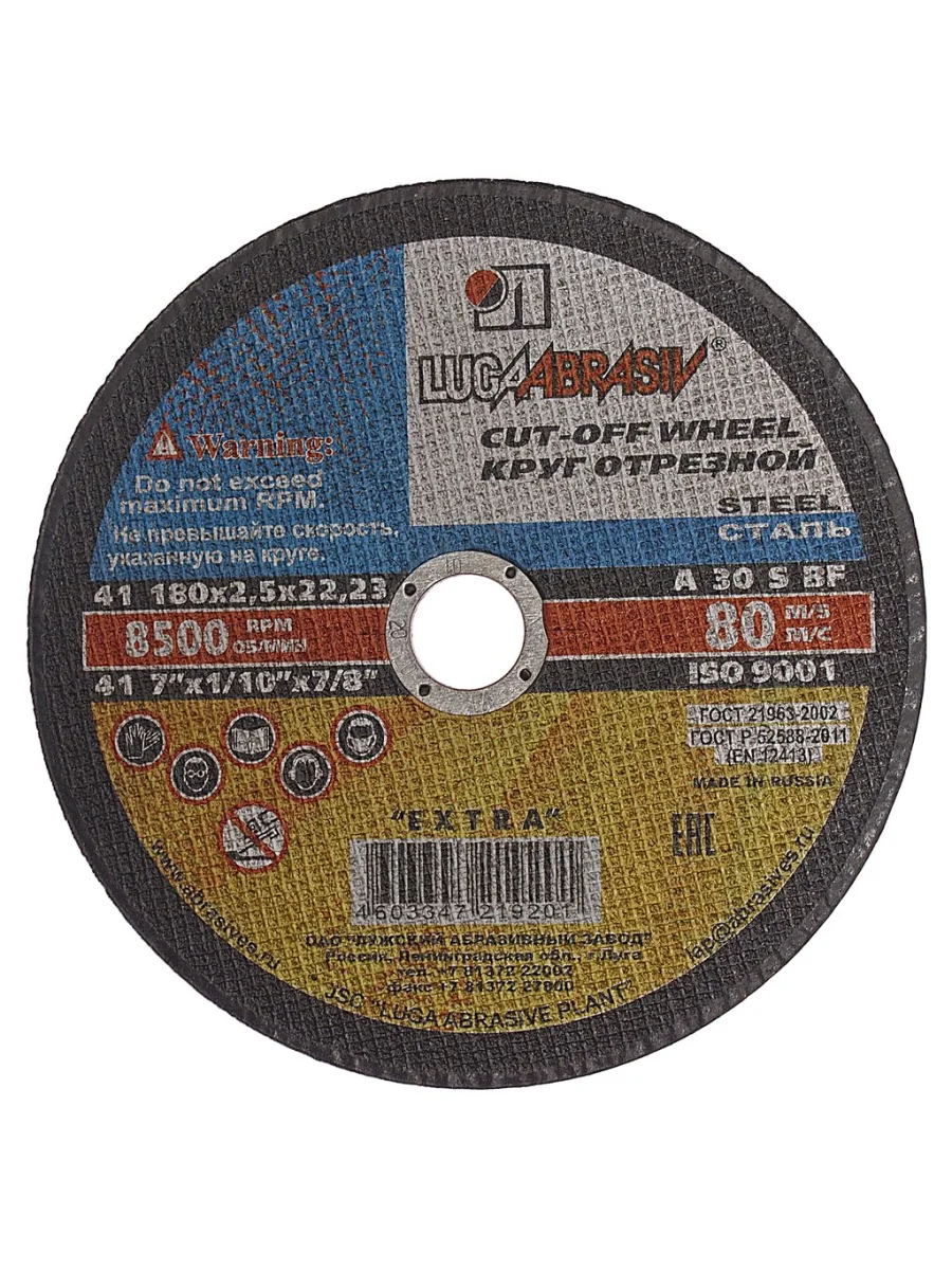 | Наименование | Круг отрезной по металлу 180х2.5х22мм А30 LUGAABRASIV в Ставрополе Ставропольском крае |