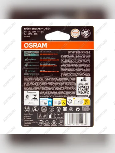Лампа 12V H1 55W P14.5s +150% 3500K блистер (1шт.) Night Breaker Laser OSRAM OSRAM 64150nl-01b в Ставрополе Ставропольском крае