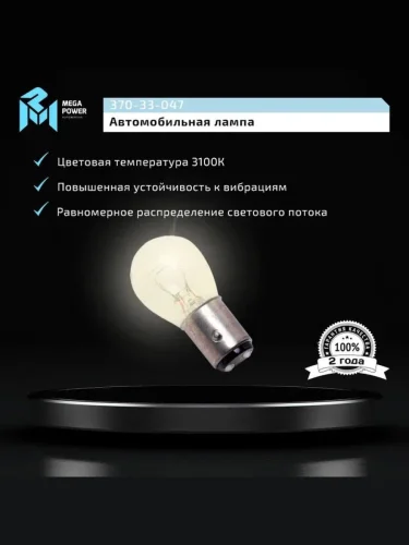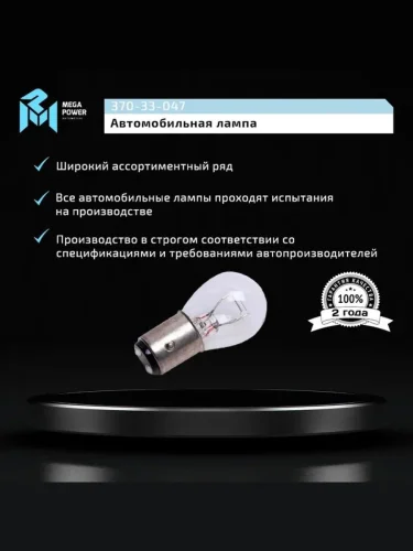 | Наименование | Лампа 12V P215W BAY15d Standart MEGAPOWER MEGAPOWER 370-33-047 в Ставрополе Ставропольском крае |