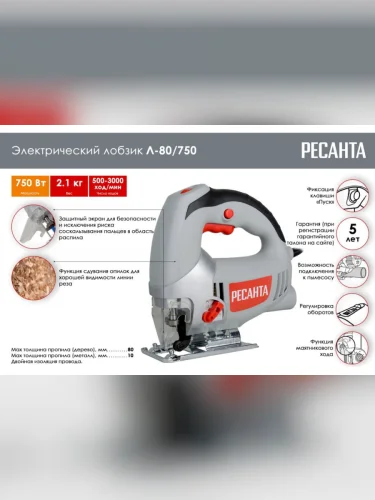 Лобзик 750Вт 500-3000обмин. дерево-80мм маятник РЕСАНТА РЕСАНТА 7593 в Ставрополе Ставропольском крае