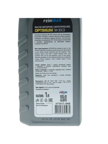 | Наименование | Масло моторное C3 5W30 синт.1л REINWELL REINWELL 4945 в Ставрополе Ставропольском крае |