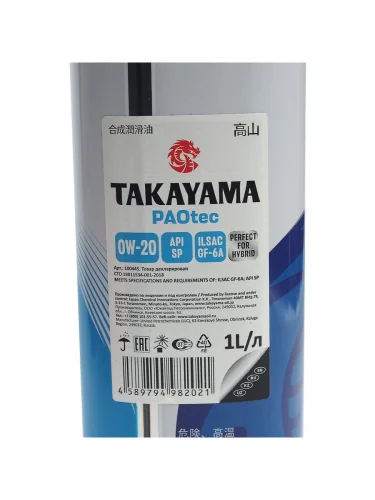 | Наименование | Масло моторное PAOtec GF-6ASP 0W20 синт.1л TAKAYAMA TAKAYAMA 100445 в Ставрополе Ставропольском крае |