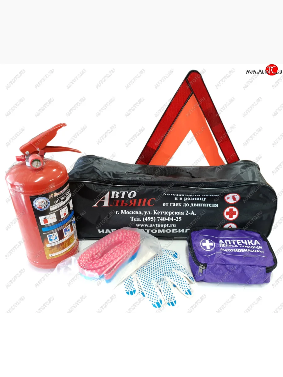 Набор автомобилиста (огнетушитель ОП-2 аптечка знак трос 3.5т перчатки) аварийный АВТО-АЛЬЯНС ПОЛЯРНИК фармакор 1 в Ставрополе Ставропольском крае