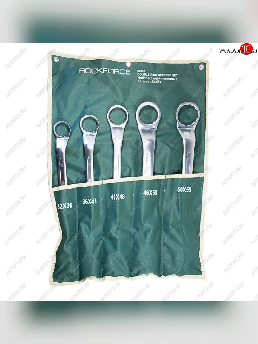 Набор ключей накидных 32-55мм 12-гранных 75град. 5 предметов на полотне ROCKFORCE ROCKFORCE rf-5059p в Ставрополе Ставропольском крае