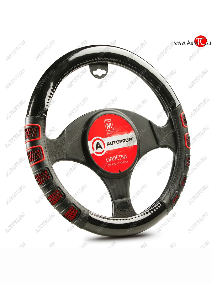 Оплётка руля (35-37см. (S), чёрная экокожа, красные 3D вставки) AUTOPROFI (Чёрный/красный) в Ставрополе Ставропольском крае