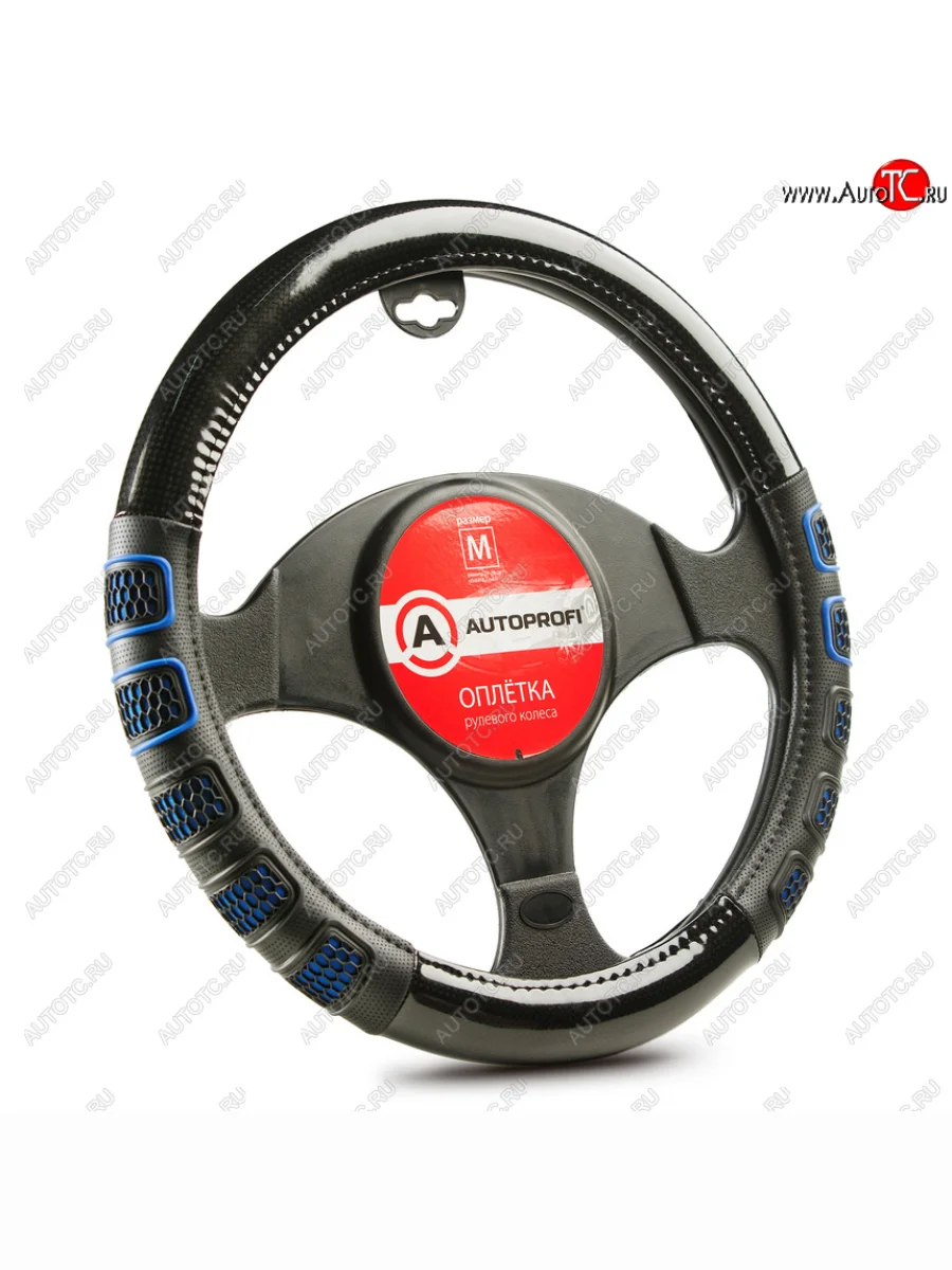 Оплётка руля (35-37см. (S), чёрная экокожа, синие 3D вставки) AUTOPROFI (Чёрный/синий) в Ставрополе Ставропольском крае
