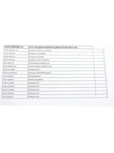 | Наименование | Прокладка двигателя ЯМЗ-536 РТИ полный комплект РД РУССКИЙ ДВИГАТЕЛЬ 5360-2000005-10 в Ставрополе Ставропольском крае |