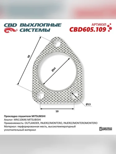 | Наименование | Прокладка MITSUBISHI трубы приемной глушителя CBD в Ставрополе Ставропольском крае |